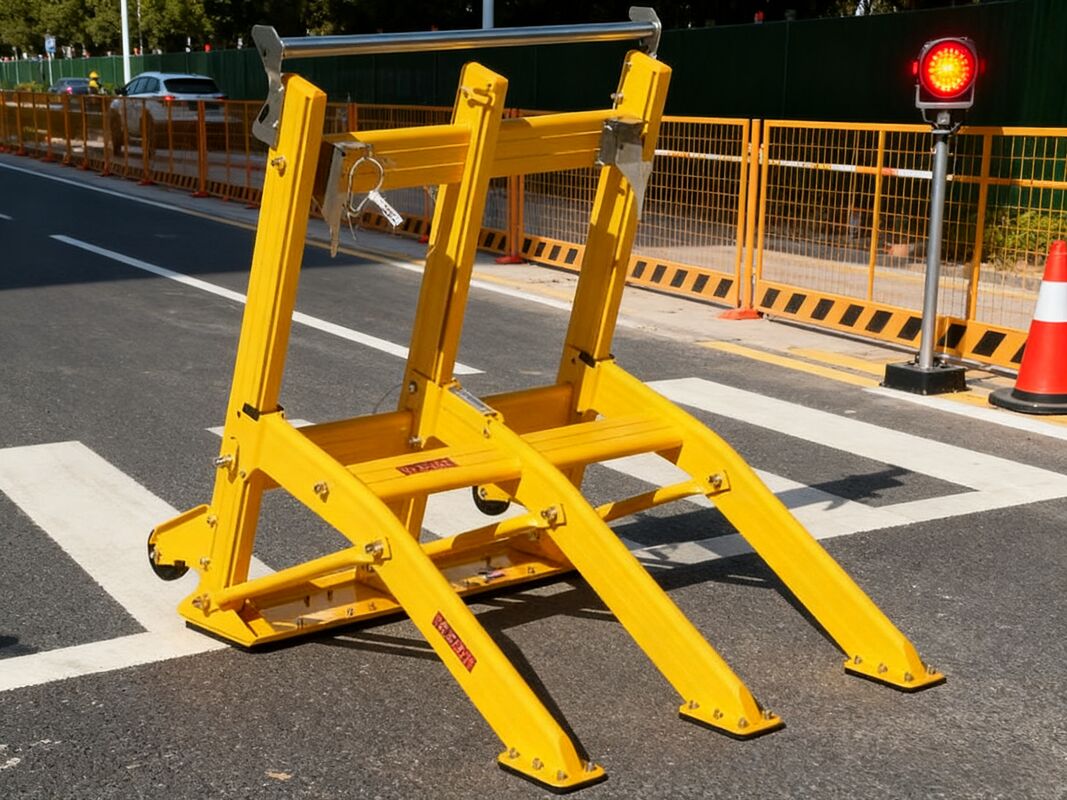 低速移動の設計と車両のセキュリティバリアを展開する 建設エリア折りたたみこの装置は,建設現場の周辺に設置された衝突防止および衝撃吸収装置で,建設現場の職員を保護します.. 衝突防止装置の品質は安全で信頼性があり,傍受効果は明らかです. 黄色いプラスチック噴霧の外観は目立つです.運転者が誤って建設現場に入って装置にぶつかった場合運転手や現場の建設スタッフの生命の安全を守るため 車を強制的に止めておくことができます